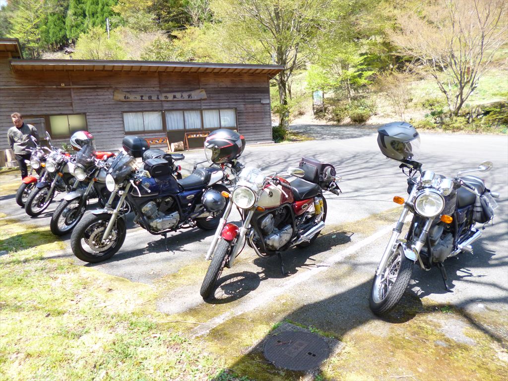 10;30に杣の里渓流公園に集合。公園内を散策(吊り橋渡ったり)して戻ったタイミングで全6台集合の写真が撮れました(苦笑