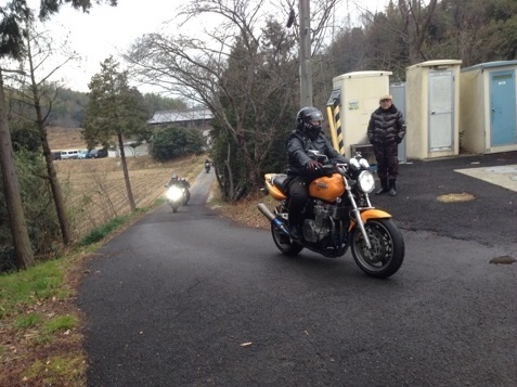 と、青いCB400SFがご入場。あれえ、どっかで見た人だぞ、と話しかけてみると、夏の琴弾公園のうつらん会で、たまたま、となり同士に停めて、TSUYOSHIさんが来られるまで話し相手をしてくださったイシカワさん(この公安九課な名前は、この後うどん屋で明らかになったのですが)でした。shimixさんも途中高速とかで一緒になったりしたそうです。