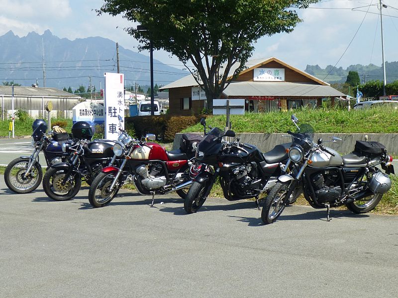 今回の参加は10名(バイク8台、四輪1台:2名)です。うちSRV/SRV-Sが4台、ルネッサが2台。今回の参加車(者)は以下のとおり(★は初参加)。