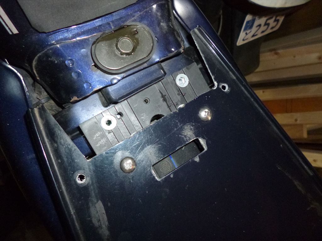 あらら、チリトリ小物入れとカウル部分を留めてるねじの画像をUPし忘れてた。 間に隙間を作るゴムのスペーサー入れてますのでFRPの穴の方に破損等無いですね。