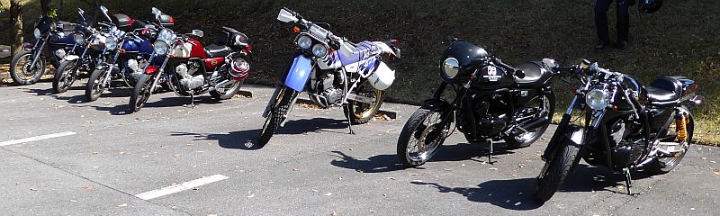 今回の参加は8名(バイク7台)です。うちSRV/SRV-Sが3台、ルネッサが3台、BAJAが1台。今回の参加車(者)は以下のとおりです。