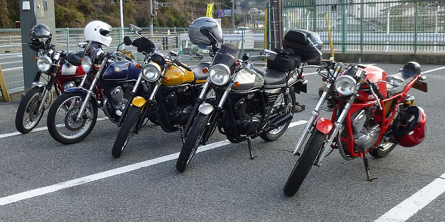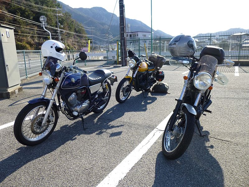 今回、最初のそして最大のサプライズは「天応公園が閉まっていた」こと。少し早目に天応西ICを降りた私は閉鎖された駐車場入り口で愕然と・・。とりあえず先に給油を済ませておこうとR31を広島方面に走っていてど僕さんとすれ違う。給油を済ませて戻るとR31を広島方面から来て案内どおりに右折したとこの駐車場スペースだけは開いていて、そこに見慣れた2台が。