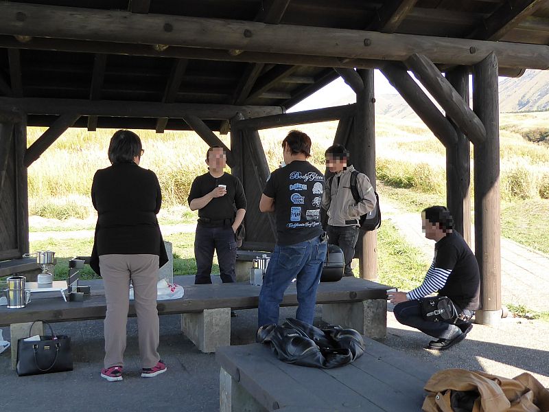 移動して(ほせさんと米さんはここで離脱)米塚を見下ろす駐車場にてコーヒータイム。