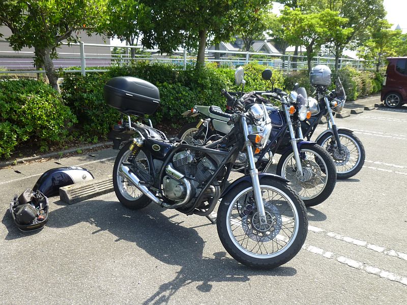 写真は(あとからの到着組はこの状態を見ていないかもしれませんが)到着早々にスロットルの戻りが悪くて調整にかかったくまんばちさんのSRVです。ミーティングでの写真としてはレアものです(ぉぃ
